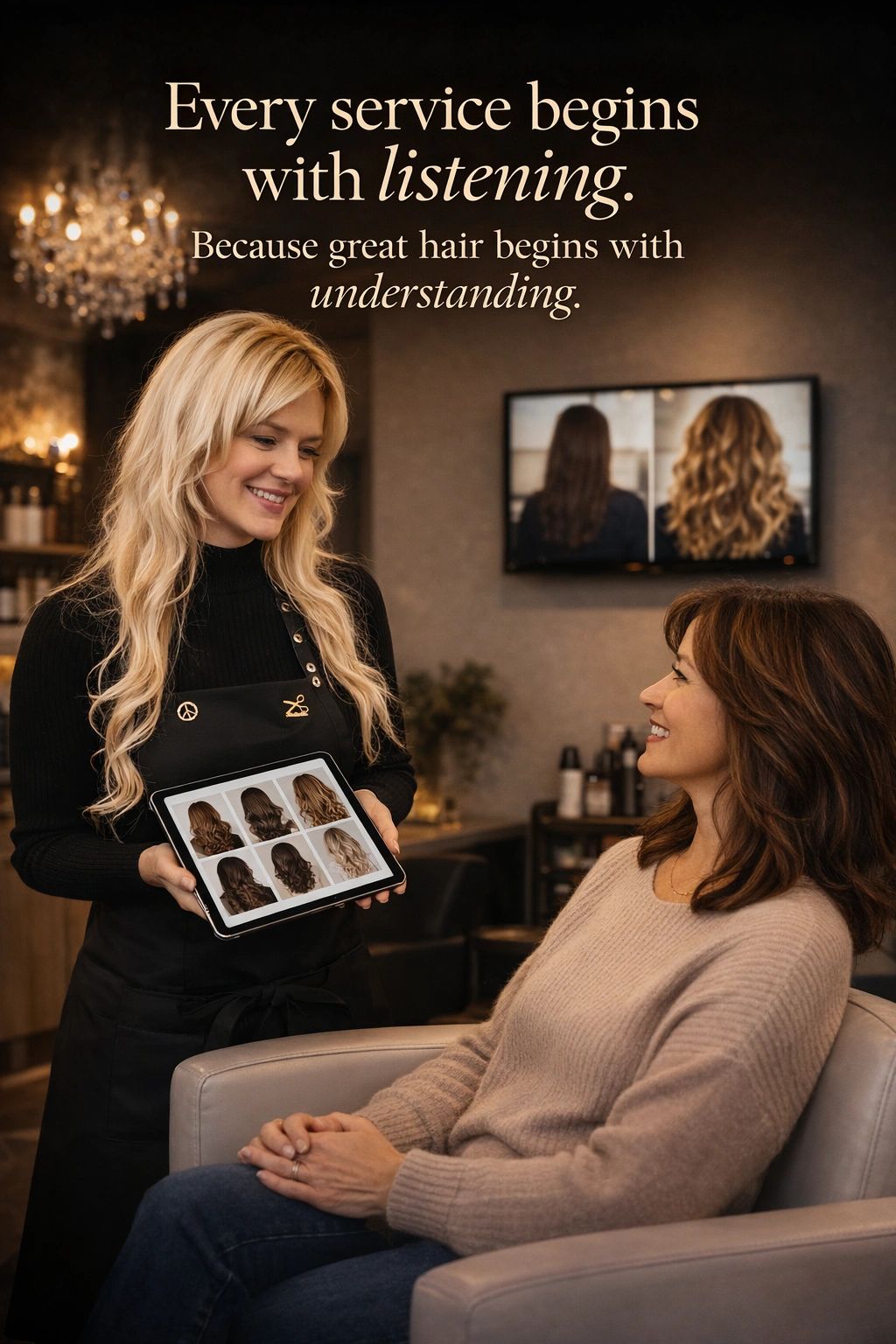 specializing in luxury hair extensions, custom hair color, precision cuts, wedding hair and perms.